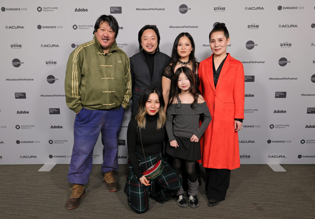 (L-R) Benedict Wong, Jimmy O. Yang, Vera Miao, Kelly Marie Tran, Aria Kim, and Fiona Fu attend the “Rock Springs” Premiere during the 2026 Sundance