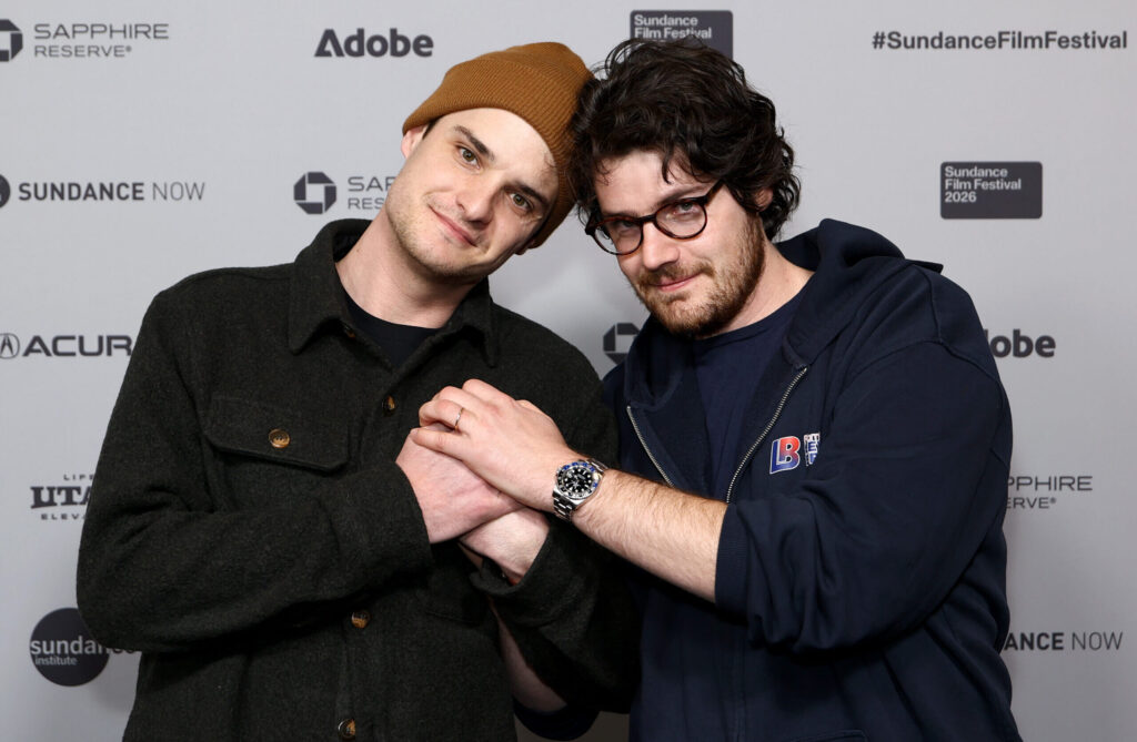 (L-R) Charlie Tyrell and Daniel Roher attend “The AI Doc: Or How I Became An Apocaloptimist” Premiere during the 2026 Sundance Film Festival at The