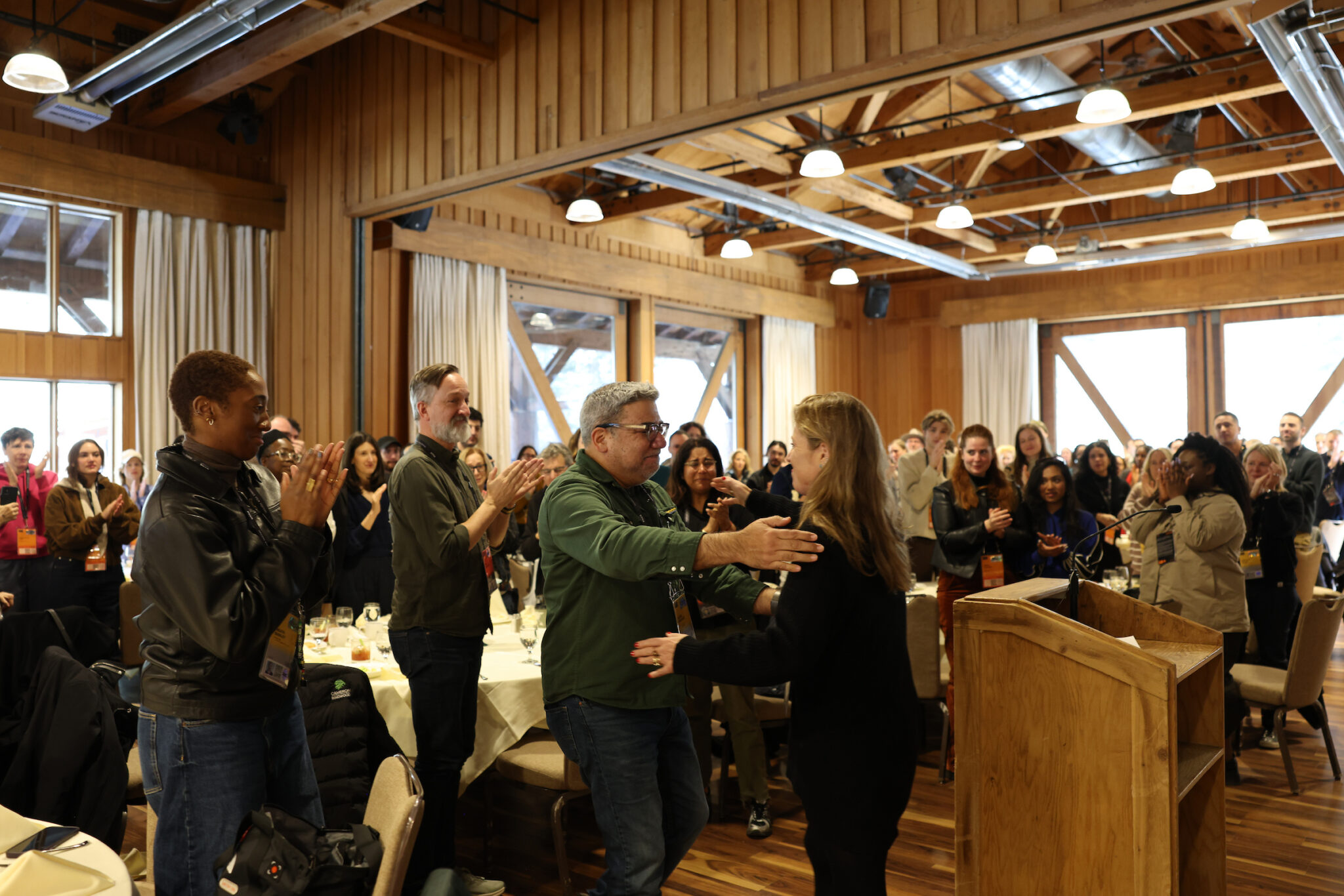 Laughter fills the rehearsal space in the resort where the brunch is being held. After grabbing food and finding new community, the room settled to hear remarks from Amanda Kelso, Eugene Hernandez, Kim Yutani, and Amy Redford. As Redford spoke about her father and the history of this event at the resort, you could feel the emotion in the space. She spoke confidently and kindly about how all of these storytellers already made it because they are creating art and sharing their voices. Tears were flowing from alums like Barbara Kopple and Rory Kennedy, as well as first-timers like Everybody to Kenmure Street’s Felipe Bustos Sierra.