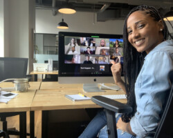 Lab fellow Elizabeth Charles joins a virtual meeting during the 2020 Creative Producing Lab. Photographer: Elizabeth Charles